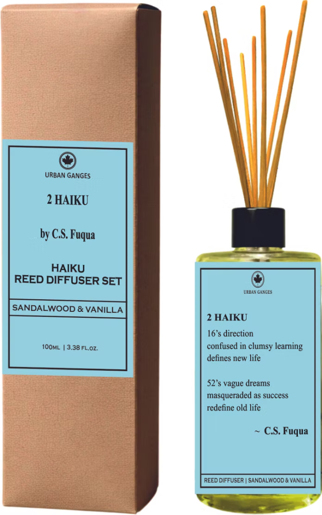 Do you like poetry with a lovely scent? Two of my haiku, featured with the scent of sandalwood and vanilla, have become part of the Urban Ganges scent diffusing line. Check it out. Quite an assortment of poetic scents.